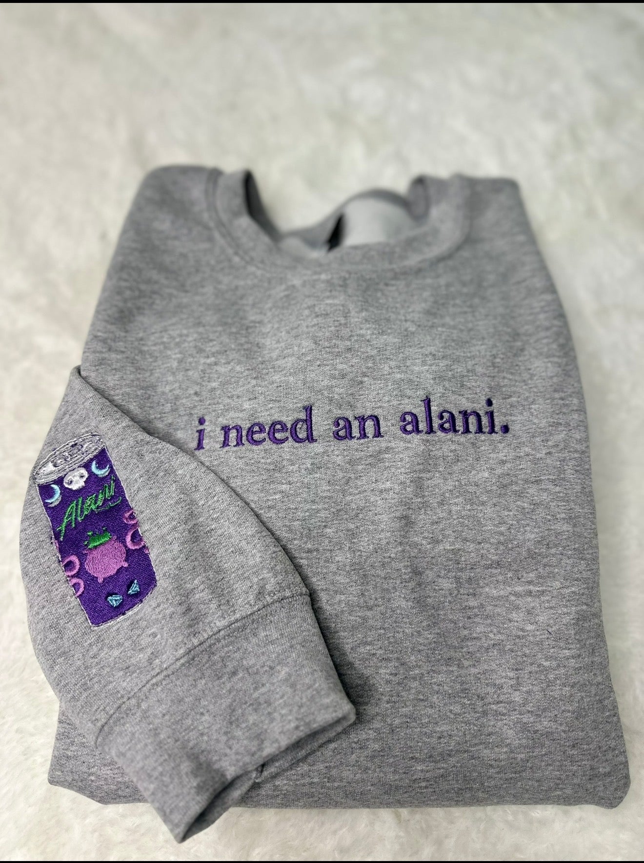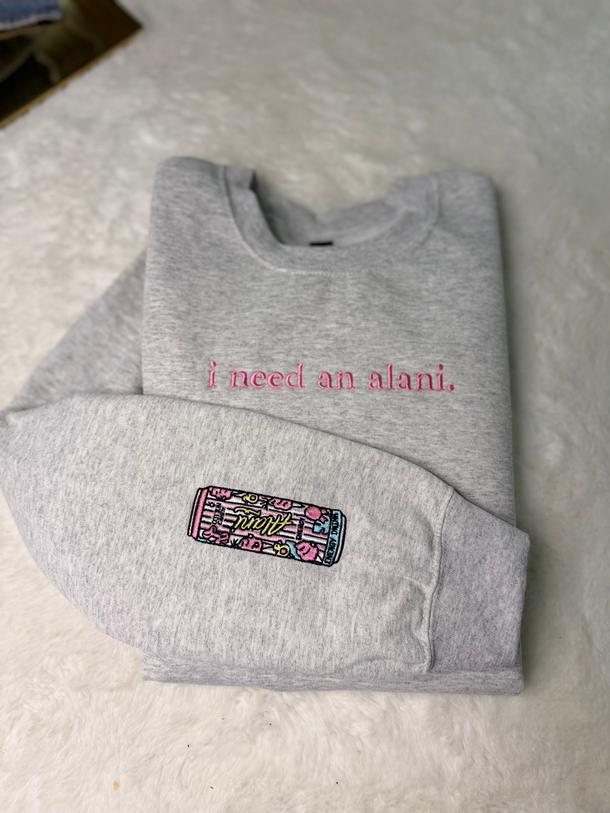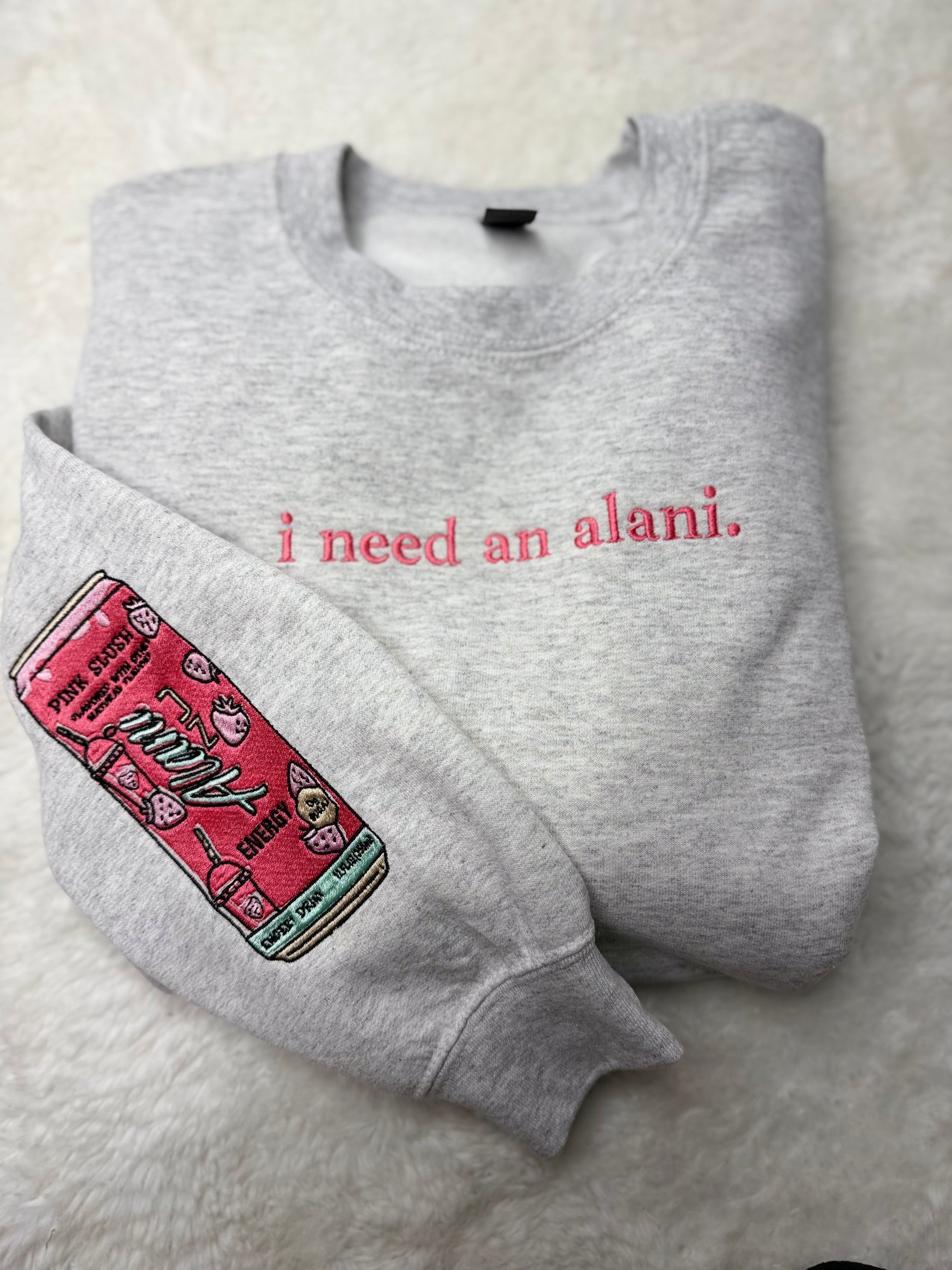 *made to Order* ships out in 3 to 5 business days. Put in the messages down below what flavor you want. Both the sleeve and front of ash grey crewneck sweatshirt is embroidered.