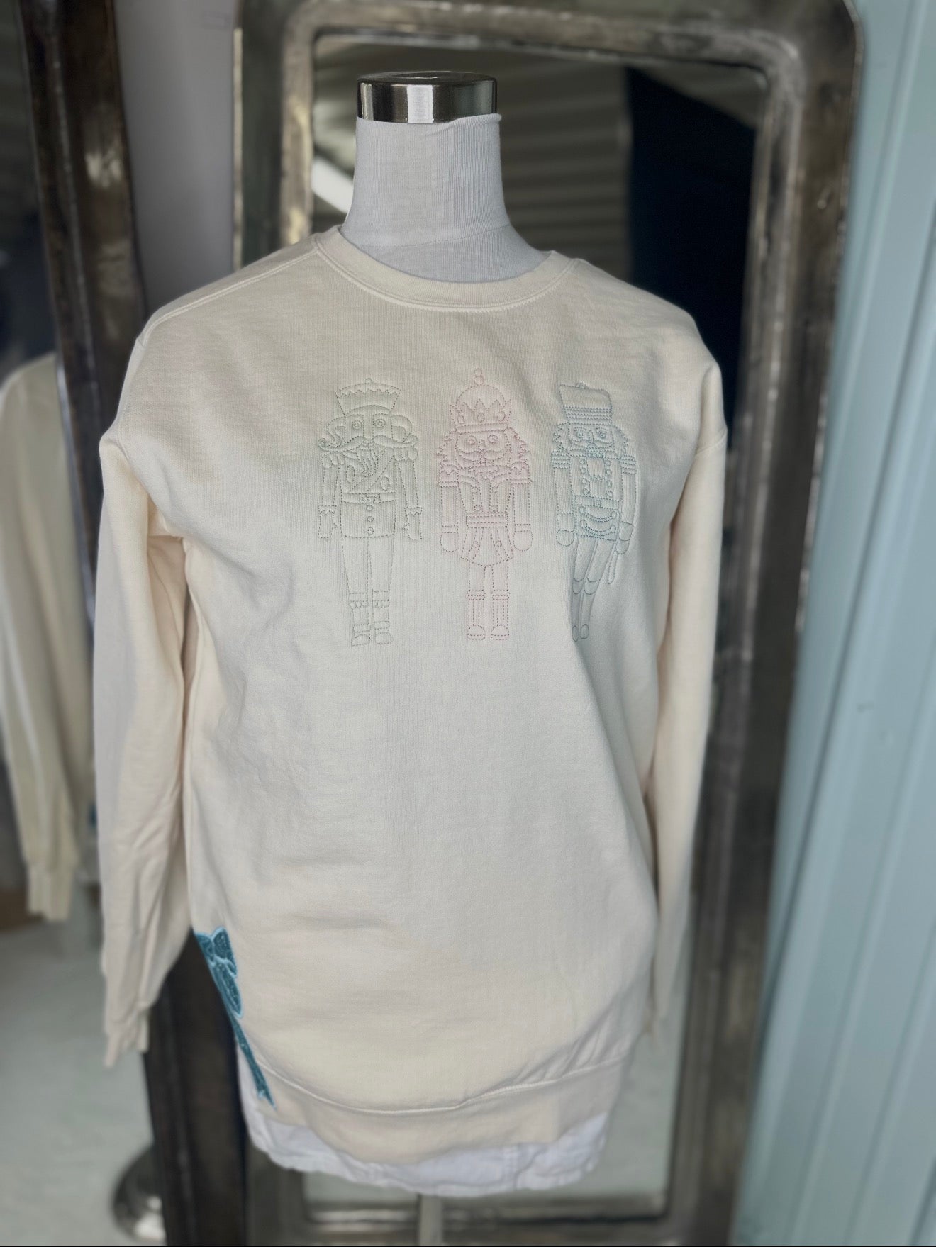 *made to order* ships in 3-5 business days. Ivory comfort colors crewneck nutcrackers in pastels! Embroidered bows on the sides